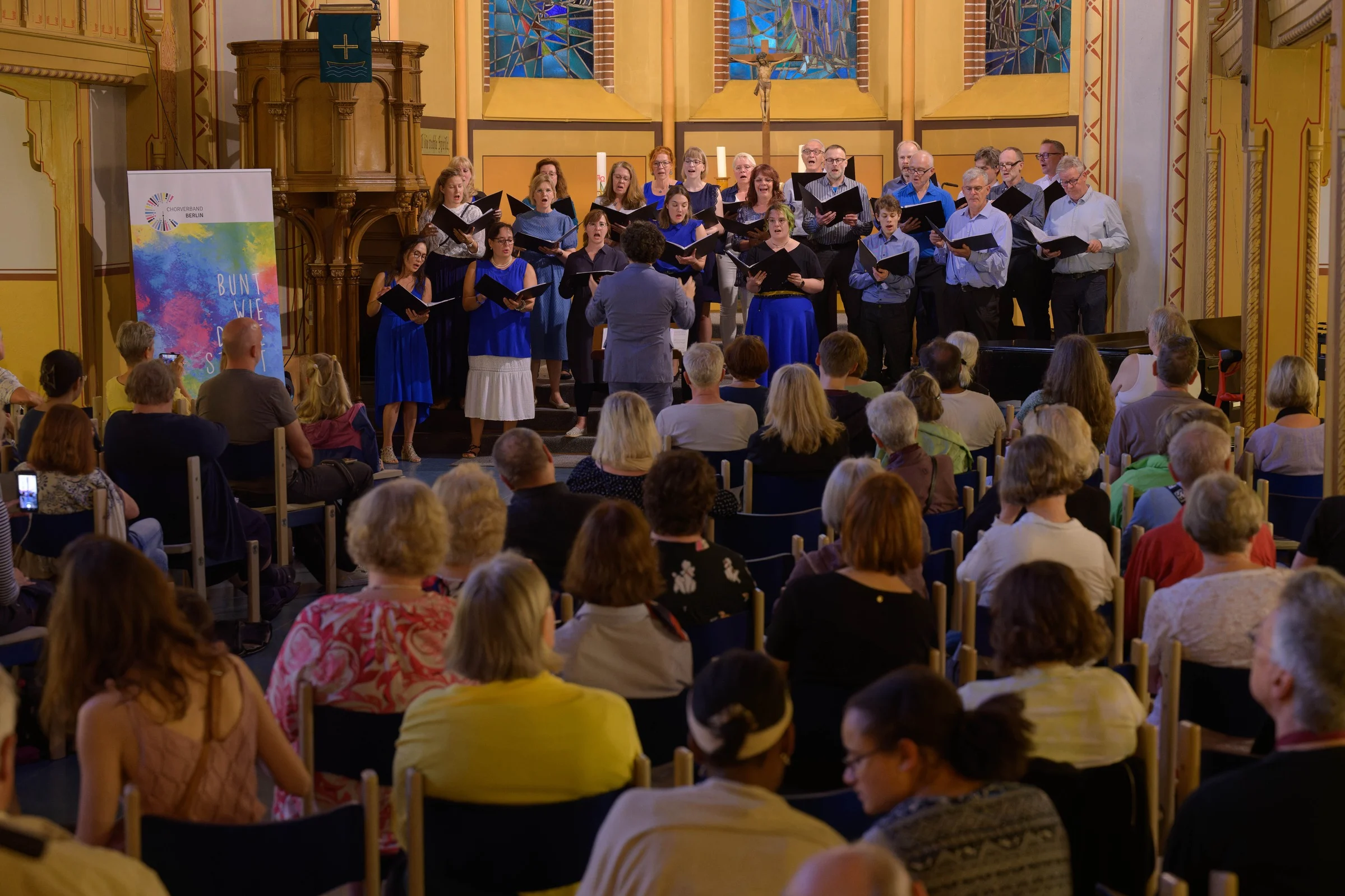 Livemusik für alle. Überall in Berlin und wir mitten drin. Es war für uns eine ganz besondere Premiere bei der Fête de la musique mit dabei zu sein. Den Zuhörer:innen wurde ein abwechslungsreiches Programm von Pop bis Klassik geboten. Die Magdalenenkirche Rixdorf war hervorragend geeignet, damit Chormusik klangvoll präsentiert werden konnte. Zusammen mit 11 ganz unterschiedlichen Chören und Ensembles aus der Berliner Chorszene gestalteten wir den längsten Tag des Jahres.